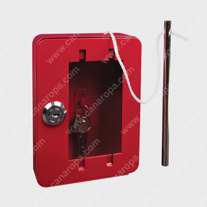The EB-02 Emergency Key Cabinet can hold one key or a small set of keys securely until an emergency. Bright red for easy visibility, the integrated hammer-rod can be used to break the glass to access the keys inside.